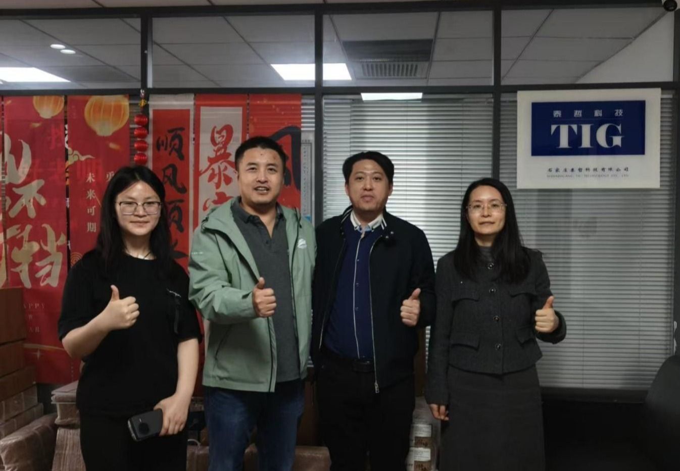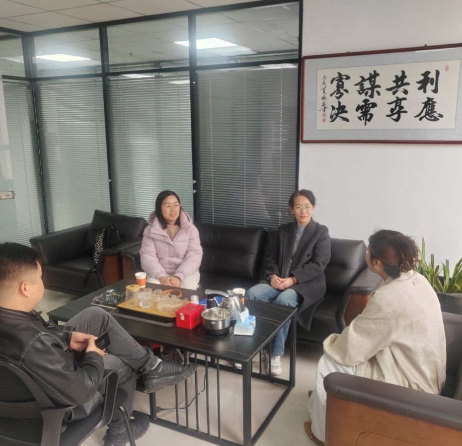 在石家庄泰哲科技有限公司,教师卢刚与企业负责人、校外导师座谈,了解学生任可心在外贸业务员岗位的客户开发、订单跟进等工作表现,就校企协同育人、人才输送等事宜达成共识。