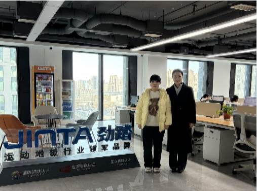 在石家庄劲踏地板科技有限公司,教师踏地板科技有限公司,教师冯静看望实习学生赵家贝,了解其境外平台视频号运营、内容策划、拍摄剪辑、粉丝运营与数据复盘等工作内容,肯定学生专业能力与岗位适应力,倾听实习收获与职业规划。