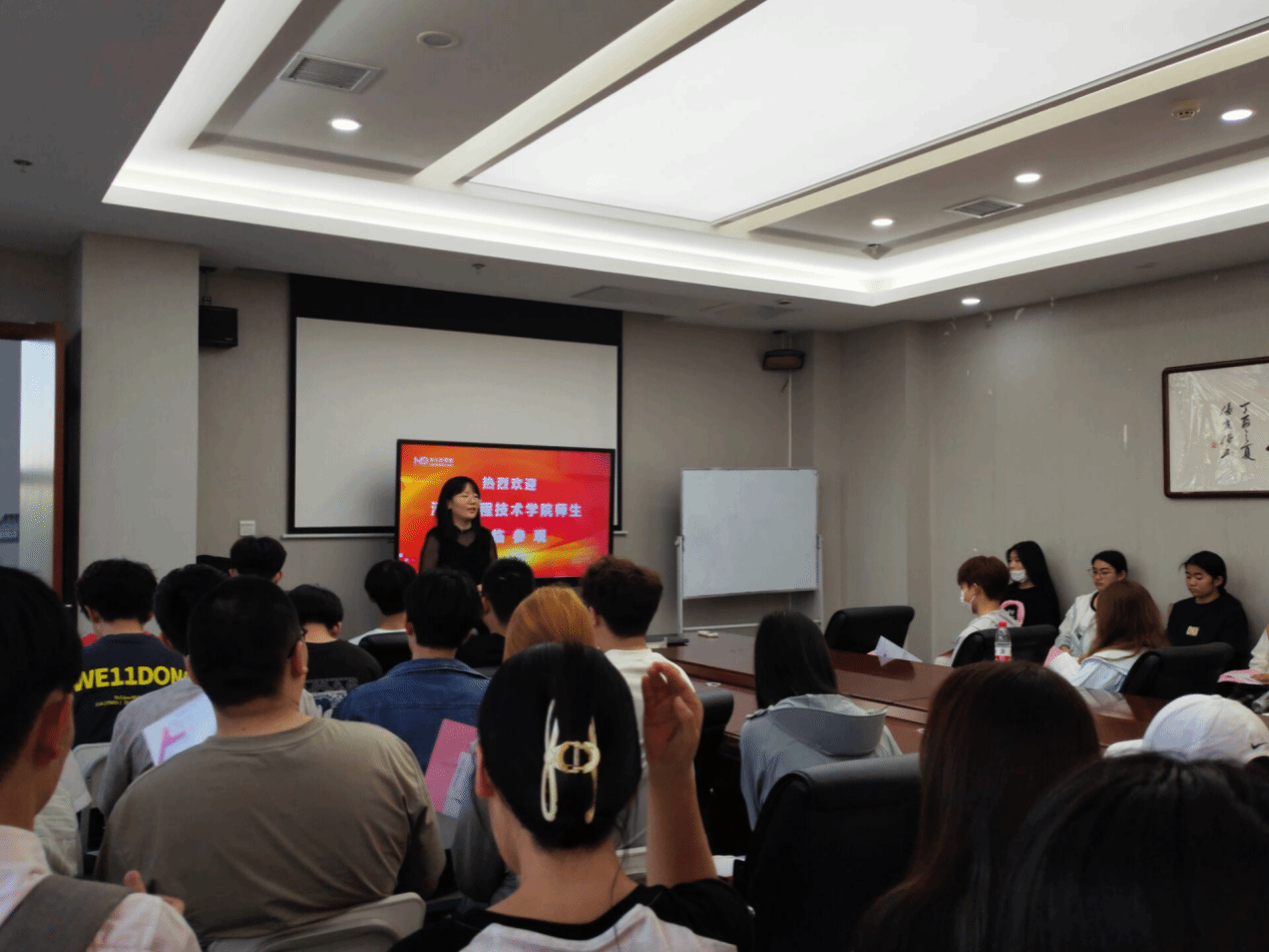 实习流程分为“探秘电商直播基地”、“专题讲座分享”和“入驻实体创业经验分享”三个部分,从实地观察到理论学习,全面深刻地帮助同学们学习新媒体相关知识。在抖音电商直播基地,同学们在基地负责人高月冉老师和带队老师们的带领下参观了不同品类直播间和选品中心,在这里可以近距离感受直播过程。此外,基地负责人还介绍了基地运营情况、热销品类以及优秀案例等,让同学们赞叹不已。通过听取讲解、互动体验等形式,近距离感受新媒体行业的工作内容,为同学们带来了一场与新媒体亲密接触的全新体验,进一步加深了对新媒体行业的认知。