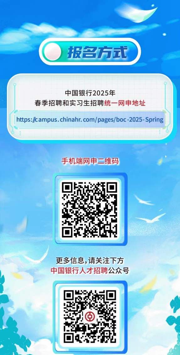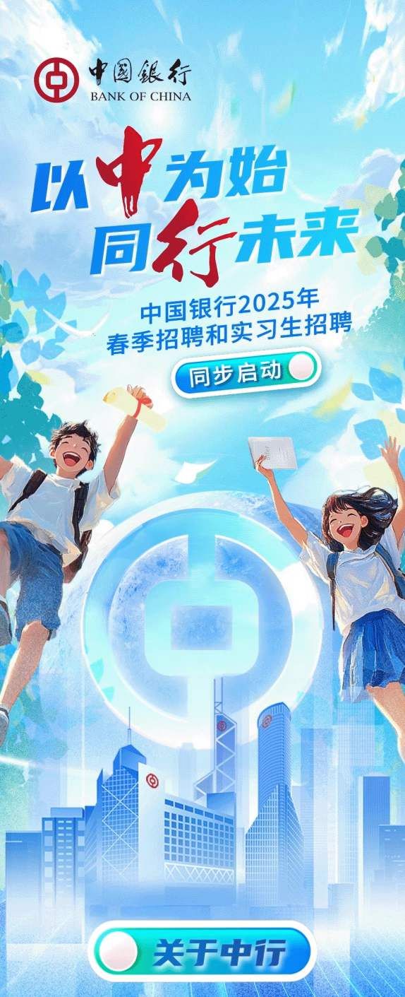 中国银行2025年春季招聘和实习生招聘同步启动!