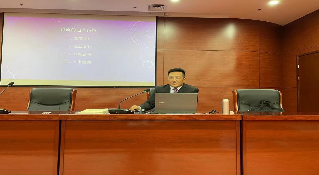 首先董先生从“马克思主义基本原理同中国具体实际相结合,同中华优秀传统文化相结合”两个结合谈起,引述了党的二十大报告中相关的精彩段落,切入讲座主题。其次,董先生从冀商文化、企业文化、市场营销、人生漫谈四个方面与同学们进行了分享。整场讲座内容风趣生动,气氛轻松活跃,期间董先生不时的与学生开展互动,同学们也踊跃参与,讲座出现了一次次高潮,迎来阵阵热烈的掌声。