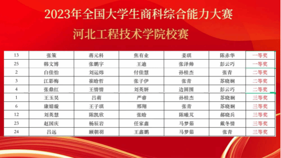 本次tyc33455cc太阳成集团商科能力大赛圆满结束,同时恭喜张策、韩文博、白佳怡、江影梅、张鼎红、王玉昊、康婧璇、刘英慧 、赵国庆、吕远带领的队伍获得了代表我校参与全国大学生商科综合能力大赛的的资格,恭喜他们获得了优异的成绩,愿这些队伍能够力争上游,在全国大学生商科综合能力大赛中取得优秀成绩为校争光
