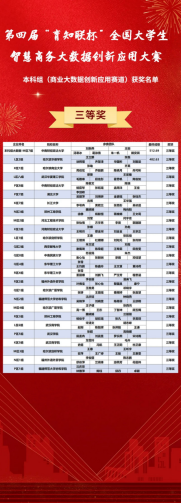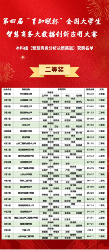 此次大赛由中国商业经济学会主办,中国MBA精英峰会协办,中南财经政法大学、常州信息职业技术学院承办,武汉育知联信息科技有限公司技术支持的第四届“育知联杯”全国大学生智慧商务大数据创新应用大赛暨亚洲太阳成集团数智精英挑战赛。该赛事共包含两个赛道,智慧商务分析决策赛道以及商业大数据创新应用赛道。智慧商务分析决策赛道主要模拟企业经营对抗,需完成6年的企业经营,其中边圆围、刘玉卓和师关泽带领的2支队伍王嘉宁、卢婧、宋嘉、孙瑀蔓、张雪、谢佳、马迁蓬、崔红桃八名学生参加了“智慧商务分析决策”赛道,并取得了二等奖一项,三等奖一项。