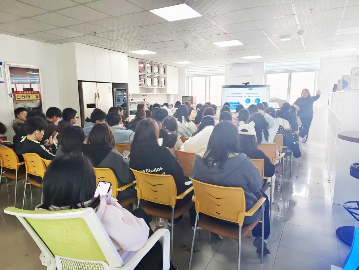 在岗位认知环节,学生们走进丝歌三大业务板块,与一线员工面对面交流。在 “成功易” 媒介运营中心,团队资深负责人宋妍经理详解了跨境媒介运营岗的核心工作,重点讲解了 Google、TikTok 等全球主流平台,通过关键词优化、广告投放策略制定,海外社媒帮助企业实现精准获客,这要求从业者既懂平台规则,又具备数据分析能力。”
