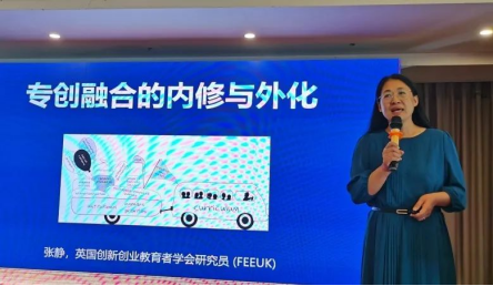 英国创新创业教育者学会国际研究员张静以《专创融合的内修与外化》为题作了专题报告,从“为什么要为未来而学”“学什么?”“怎么学”三方面作分享。从“内修”与“外化”两方面介绍开展“双创”教育的路径。“内修”即内涵式发展,培养学生的创新意识、思维、能力和态度,这可以通过课程设计和教学方法/技巧实现。“外化”则是创新意识、思维、能力和态度的具体表现,是为他人创造价值,这需要客户思维——洞察他人需求,提供解决方案。