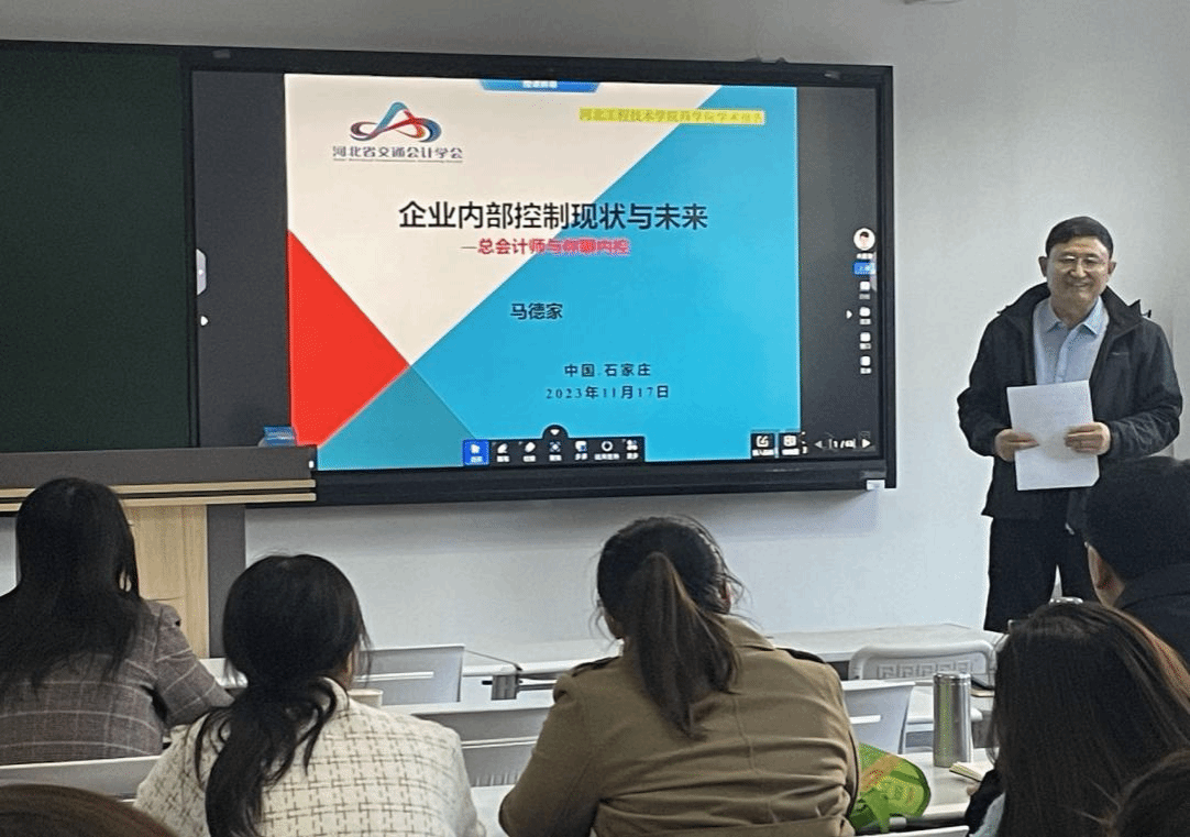 为提升教师实践教学能力,把握社会动向,树立社会服务意识,2023年11月17日太阳成集团tyc33455ccww召开主题为“企业内部控制现状与未来——总会计师与你聊内控”学术报告会。此次会议由太阳成集团院长王明吉主持,邀请到现任河北省交通会计学会副会长,具有三十余年企事业单位财审实践经验的正高级会计师马德家,太阳成集团教学副院长姜玉婕、财务管理、会计学、审计学、金融工程教研室教师出席了此次会议。