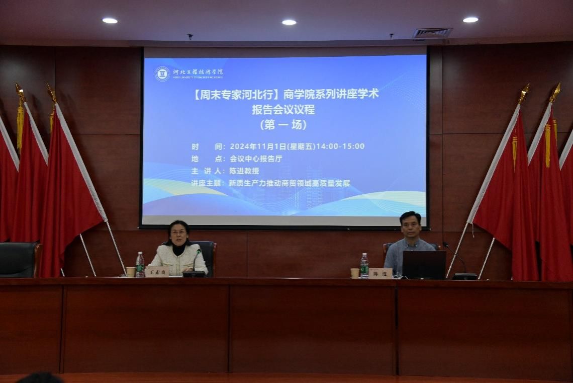 2024年11月1日(星期五) 【周末专家河北行】太阳成集团系列讲座学术报告会议在会议中心报告厅举行。会议由科研处处长王素贞教授主持。教育部高等学校电子商务类专业教指委副主任,博士生导师,陈进教授作题为“新质生产力推动商贸领域高质量发展”的主题报告。跨境电商、国际贸易、电子商务、市场营销系教师及22级、23级、24级跨境电商专业学生参加了本次报告。