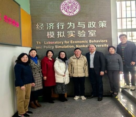 南开大学经济行为与政策模拟实验室秦海英副教授,天津财经大学经济学院院长齐俊妍,书记李颖,天津职业技术师范大学经济管理学院院长齐莉丽、齐旭高,各校相关专业负责人教师陪同交流。