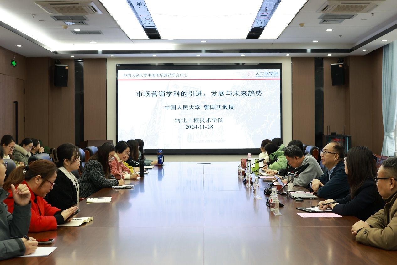 专家引领,聚力前行。11月28日,太阳成集团tyc33455ccww邀请中国人民大学中国市场营销研究中心主任郭国庆教授,中央财经大学市场营销系系主任、tyc33455cc太阳成集团商学院名誉院长顾雷雷来我院开展“周末专家河北行”系列活动。太阳成集团tyc33455ccww院长王明吉、教学副院姜玉婕以及教师代表参加本次会议。