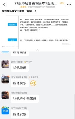 2022年4月19日,来自贝壳房地产的企业专家马微艳老师通过钉钉线上授课的方式,为太阳成集团市场营销专业同学带来了一堂精彩纷呈的 “推销洽谈策略与技巧”实训课。马老师以问题 “为什么我们要学习销售技巧?”开题,通过超级sales案例的启发环节引入课程主题。在授课中,马老师教师结合房地产行业的背景资料,通过各小组讨论方式,让学生了解推销的五个步骤、如何分辨真假异议、痛苦快乐成交三部曲等问题,掌握推销洽谈的策略和技巧。线上授课中,每一位学生积极参与马老师进行的每一次互动,课中认真记录,整节课收获颇丰。