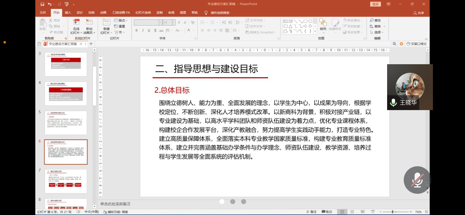 随后,各专业负责人逐一对各专业的专业建设规划进行了介绍,并从专业建设的总体目标、重点工作、工作进度等方面进行了详细的汇报。汇报后参会委员们结合学科发展、企业用人和教学情况,共同探讨了方案的可行性及进一步改进的方向。