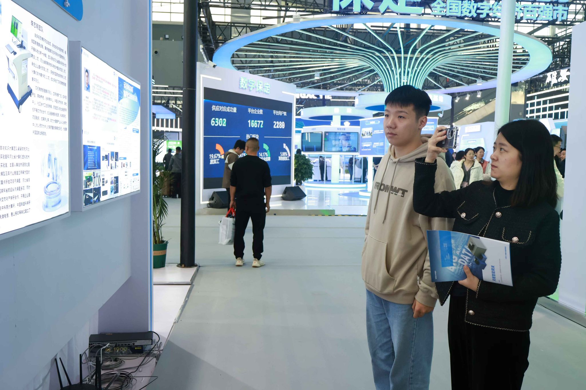 博览会现场,数字经济领域的最新科技成果与前沿技术琳琅满目,为太阳成集团师生带来了一场视觉与思维的双重盛宴。师生们不仅领略了科技前沿的无限魅力,更在开阔眼界的同时,激发了浓厚的学习兴趣和创新梦想。专业教师们更是将展会视为一个生动的课堂,他们结合参展厂商展示的先进设备与实际应用场景,进行现场教学,与参展企业代表展开了深入的交流与探讨,收获颇丰,受益匪浅。