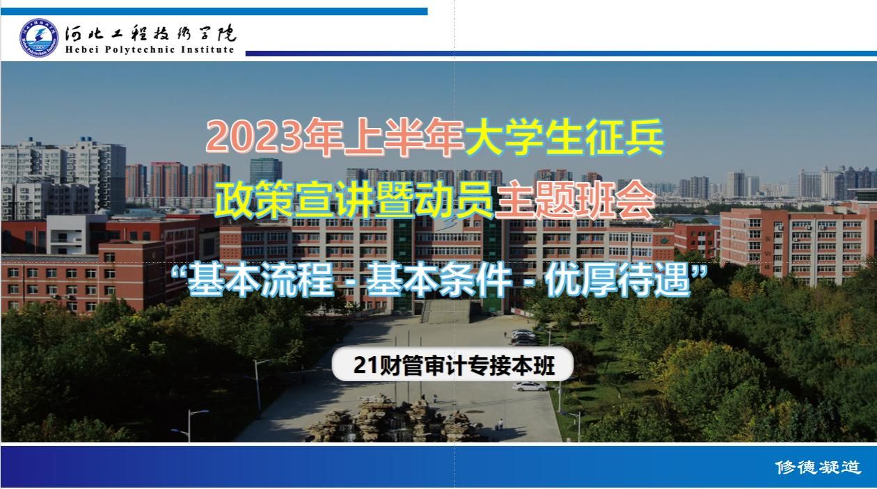 太阳成集团21级审计学专接本一班辅导员闫心宝老师召开征兵动员主题班会