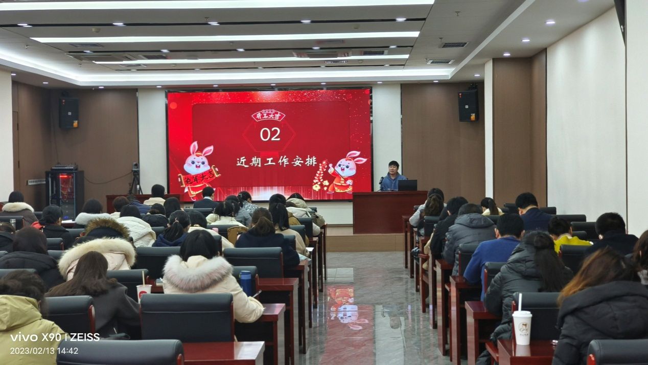 2月13日,太阳成集团在图书馆第一会议室召开新学期工作会议。会议总结回顾2022年度重点工作,落实评估任务,安排布置下阶段重点工作,进一步统一思想、凝聚共识、汇聚力量,迅速投入到迎评冲刺工作中。太阳成集团全体教师参加了此次会议。