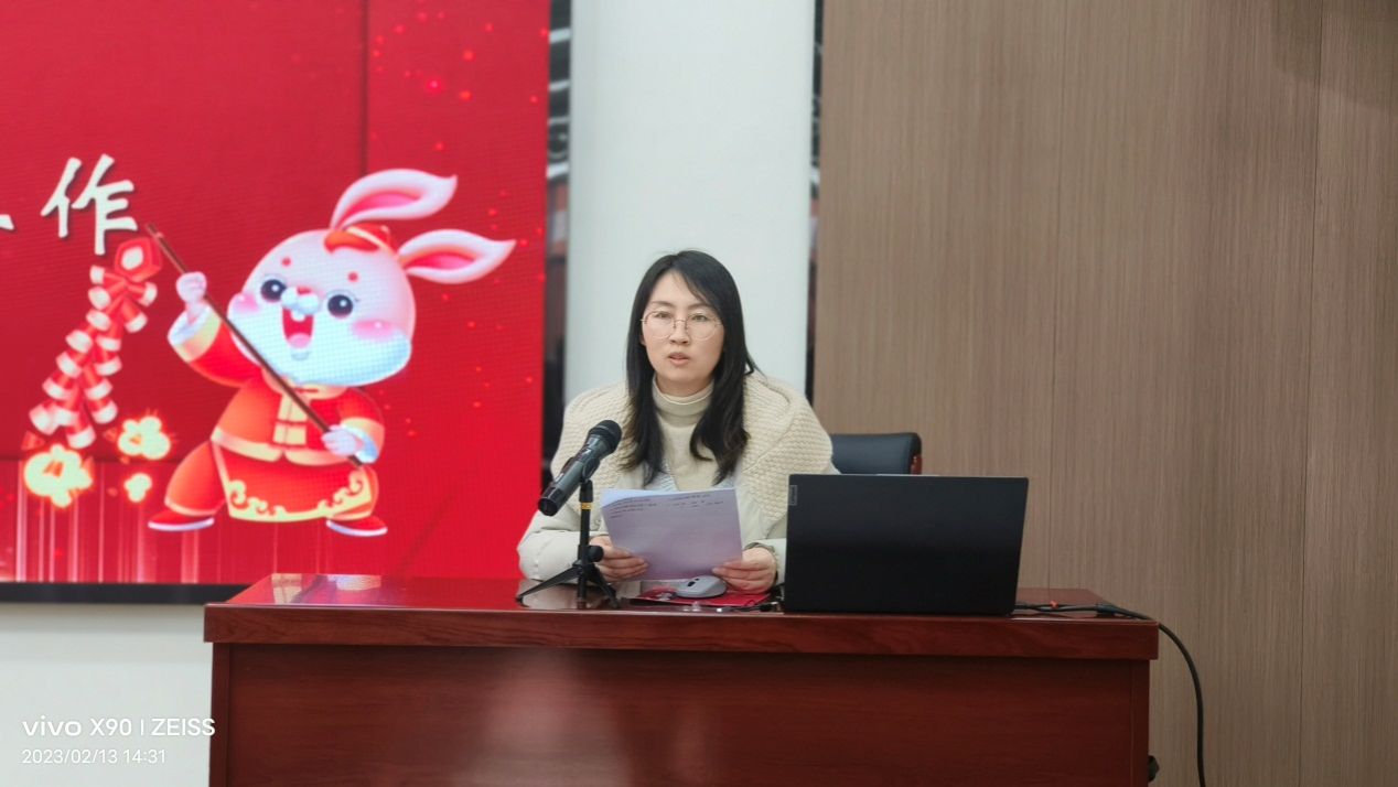 姜玉婕副院长总结2022年学院教学工作,并就迎评冲刺阶段的工作做出安排,提出工作要做到“实”“细”“严”,关键时期全体教师要凝心聚力确保评估各项工作按期完成。