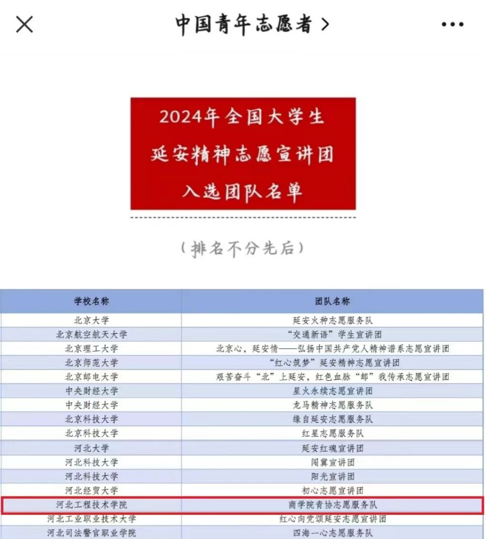 近日,团中央青年志愿者行动指导中心、全国青少年井冈山革命传统教育基地管理中心、国家电力投资集团有限公司、共青团陕西省委、中共延安市委、中国核工业集团有限公司发布了《关于遴选2024年全国大学生井冈山精神志愿宣讲团的公告》《关于遴选2024年全国大学生延安精神志愿宣讲团的公告》《关于遴选2024年全国大学生“两弹一星”精神志愿宣讲团的公告》。