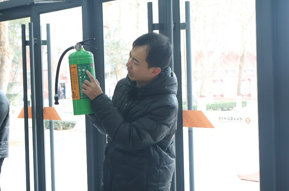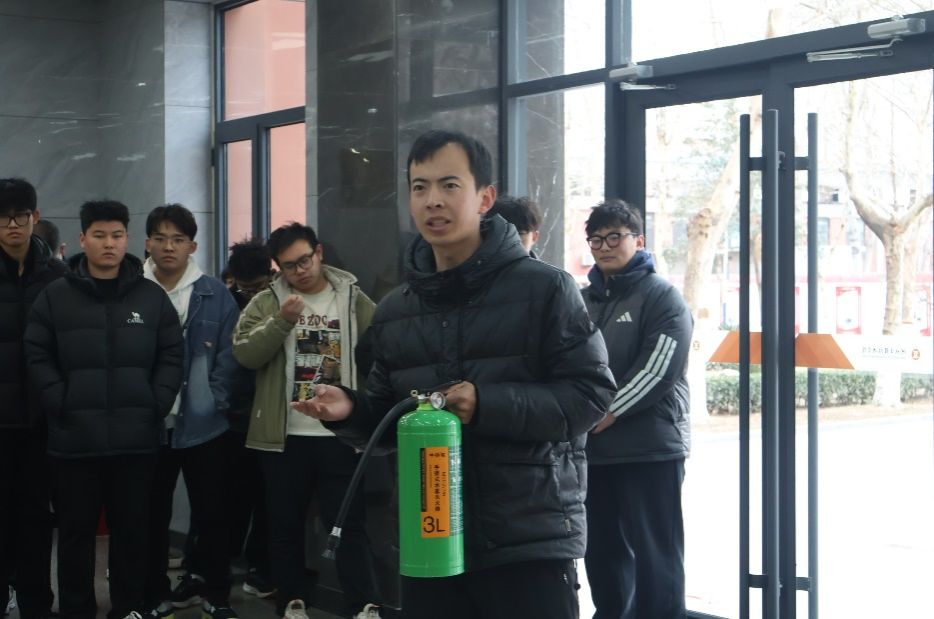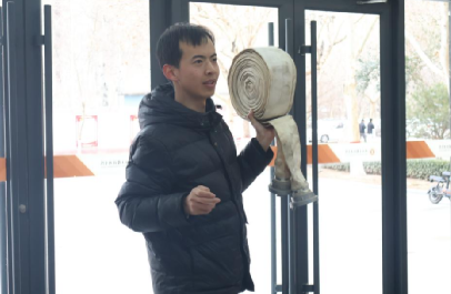 活动伊始,安全工作处安全管理中心主任梁航通老师现场示范了灭火器的正确使用流程,“一提、二拔、三握、四压”,并详细介绍了不同灭火器的适用范围及使用时的注意事项。紧接着,梁老师对消火栓水枪、水带等工具的使用方法进行了深入讲解。通过详尽的步骤说明和实际操作演示,同学们得以直观地学习灭火技巧。随后,梁老师向同学们讲授了火灾发生时如何快速准确地识别安全出口的方法,确保同学们在面对火灾威胁时,能够迅速、准确地找到安全撤离的路径。