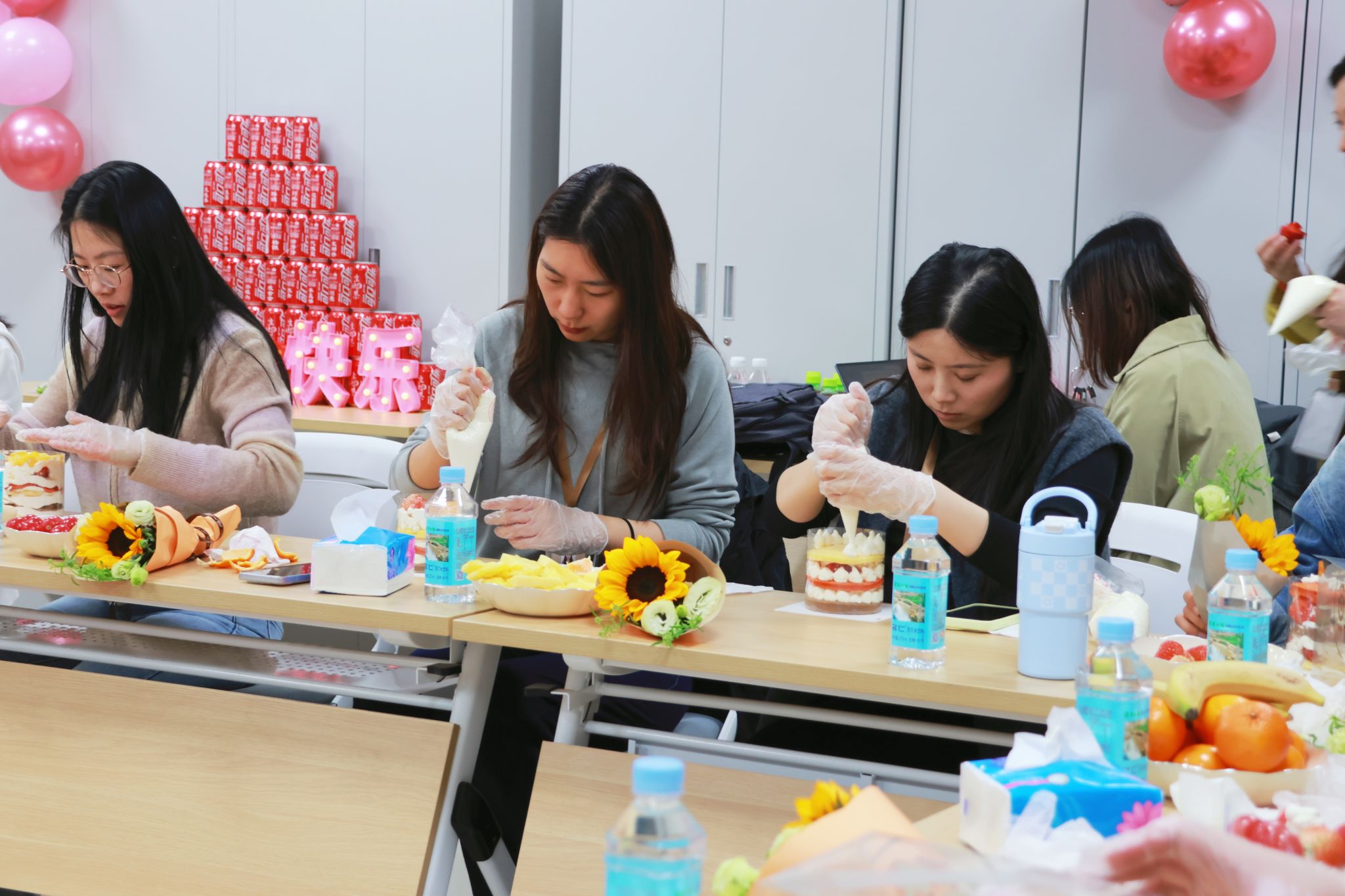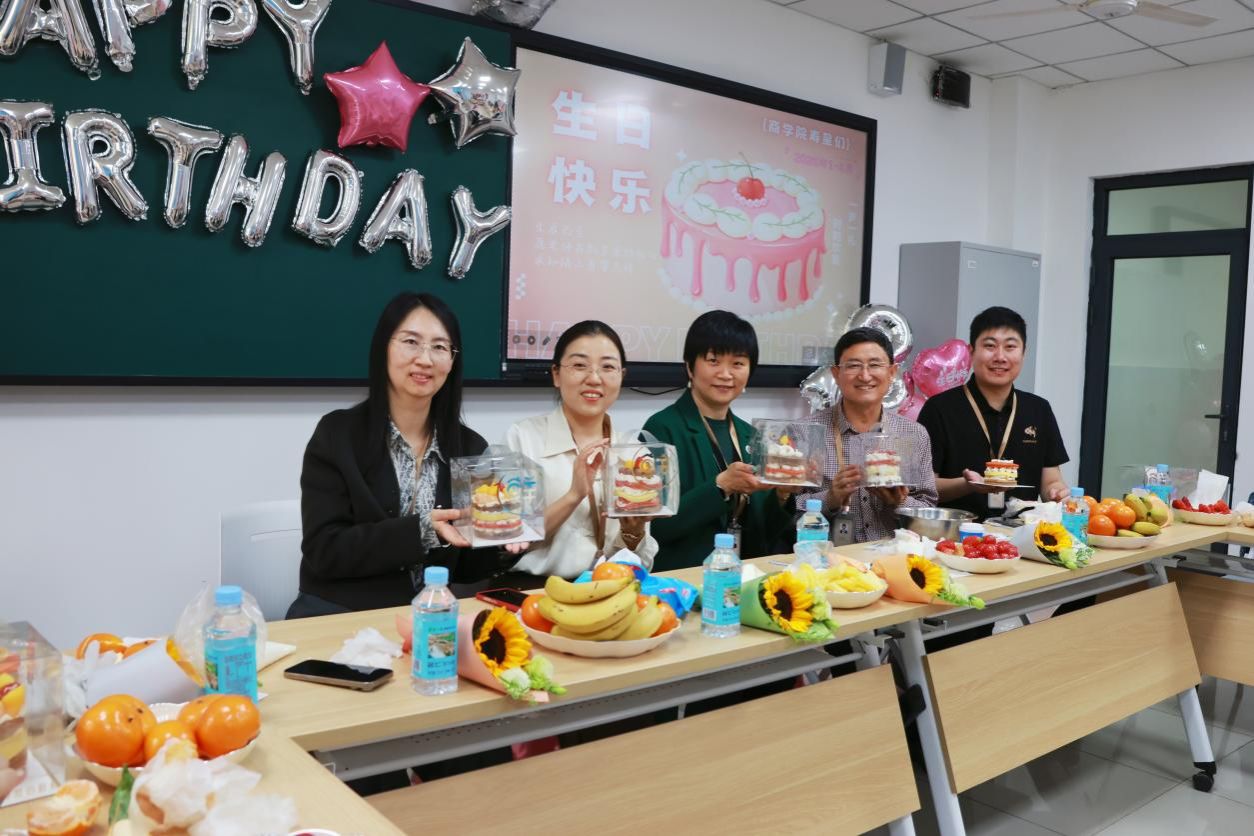活动现场布置温馨,学院为大家准备了鲜花、饮品、水果,同时还给大家提供了亲手DIY精美生日蛋糕的环节,现场气氛轻松愉悦,给大家提供了沟通畅聊的空间,轻松欢快的氛围让每一位在场的教职工感受到家一般的温暖。
