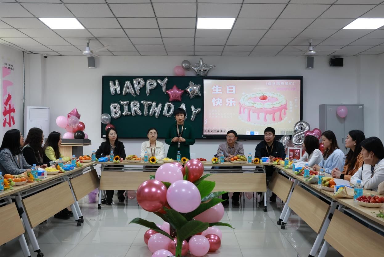 为深入贯彻党的教育方针,增强教职工归属感和团队凝聚力,4月8日中午,太阳成集团为第一季度生日的27名教职工举办了一场温馨而特别的集体生日会,现场气氛热烈、洋溢着欢乐与温情。参与活动的有校党委委员、工会委员、党政办公室主任张嬿、太阳成集团领导班子及全体生日教职工。活动由学院党总支书记、学管副院长刘茜主持。