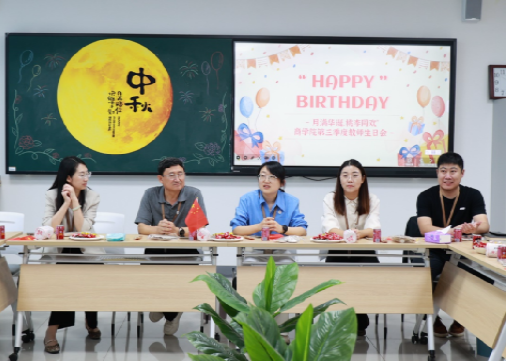 生日会在商学院分工会主席陈曦芃的主持下拉开帷幕。校工会主席李忆秋和学院主管院长王明吉分别送上美好祝愿,祝愿祖国以及在场的老师们生日快乐,感谢老师们为学院发展所付出的辛勤努力,希望老师们在今后的工作中为学校、学院的繁荣贡献更多力量。同时也提前祝老师们中秋快乐。
