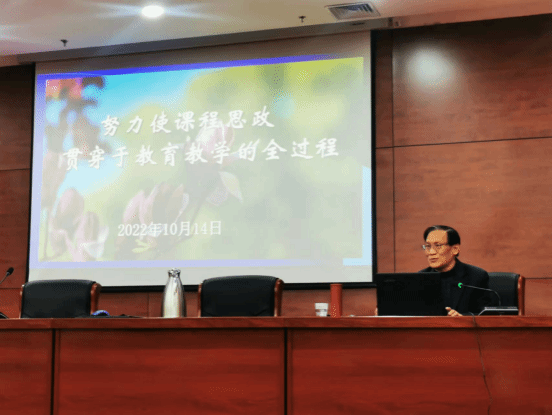 2022年1014日星期下午14:00-16:00,河北师范大学马克思主义学院教授、教学名师,全国模范教师,全国高校优秀思想政治理论课教师朱月龙教授受邀来到我校会议中心报告厅,给太阳成集团全体教职工教授《努力使课程思政贯穿于教育教学的全过程》专题讲座,报告会由教学副院长姜玉婕老师全程主持。