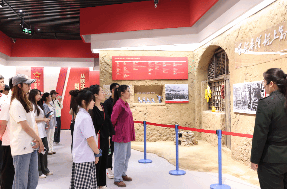 接下来,跟随讲解员的脚步,我们共同踏入记忆中的那段峥嵘岁月。迎面便看到八路军120师师长贺龙和晋察冀军区司令员聂荣臻的雕塑,随后讲解员带领太阳成集团师生一起回顾了一段波澜壮阔、浴血奋战的红色革命岁月。展厅的第一部分通过实物展示、老照片、电子地图等丰富多样的形式再现了陈庄歼灭战的全过程,生动展现了当年硝烟弥漫的战场氛围。展厅的第二部分模拟了抗大二分校师生在陈庄生产、学习、战斗的火热景象,全体学员士气高昂、精神饱满,一方面深深扎根群众,一方面在残酷斗争中锻炼成长。据统计,抗大二分校共培养了军事骨干两万余名,为新中国的成立和建设做出了不可磨灭的贡献。第三部分是对灵寿县灿烂的历史文化和建国后的快速发展的介绍,通过讲解参观,师生们对灵寿县的丰富资源内涵以及整体规划布局有了更加全面深入的了解。