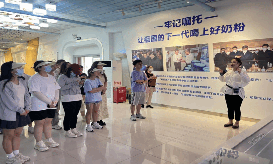 其次,学生们参观了君乐宝奶牛科普馆和挤奶大厅,奶牛科普馆集奶牛互动区、环幕影院、产品互动等区域于一体,完整呈现了世界奶业发展史及现代化奶牛养殖的相关知识和技术。学生们见证了从饲喂、挤奶、到生产的全方位的过程,优质牧场使学生们近距离接触了现代养殖业。