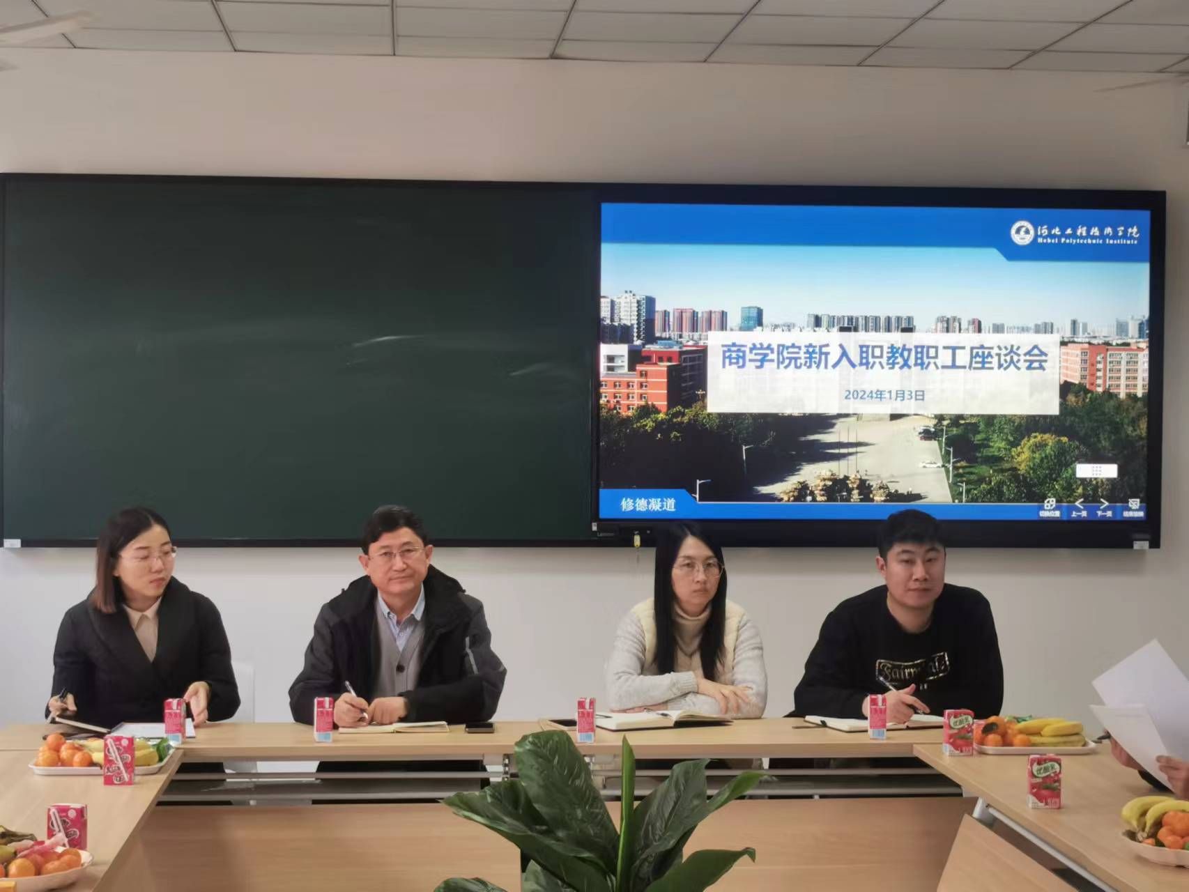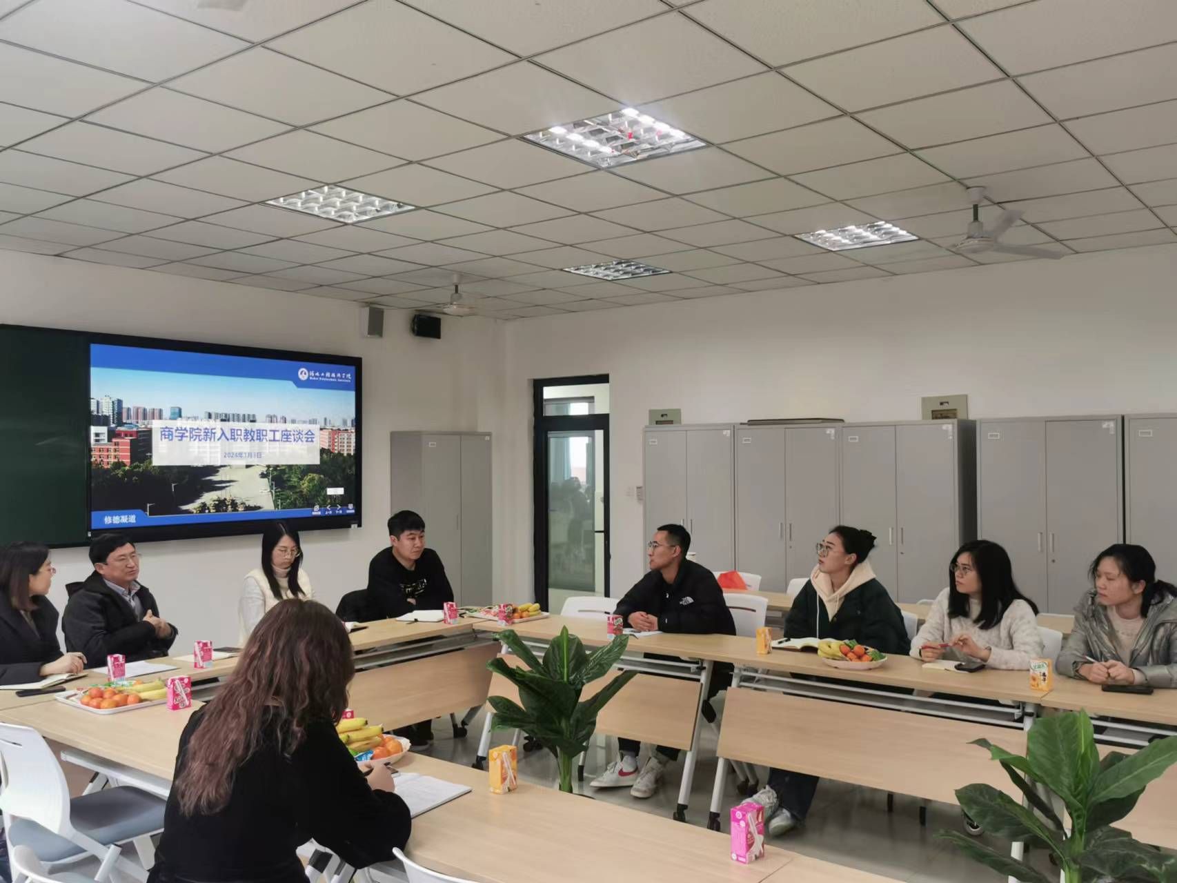 在座谈会上,院长王明吉首先代表学院向新入职的教职工表示热烈的欢迎,并表达了对他们工作和生活方面的关心。他强调了教职工在学院发展中的重要地位,并希望新入职的教职工能够尽快适应学校和学院的工作环境。新入职老师对来校以来的工作、生活感触简要自我介绍,都表示已习惯学校和学院的工作状态,争取进一步提升自身教学水平和科研水平。