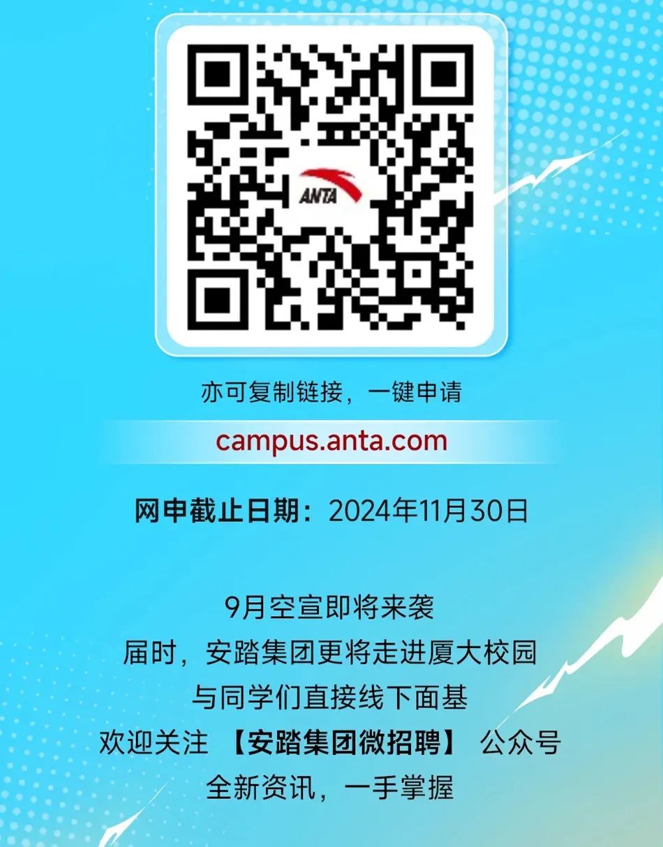 安踏集团2025届全球校园招聘正式启动!