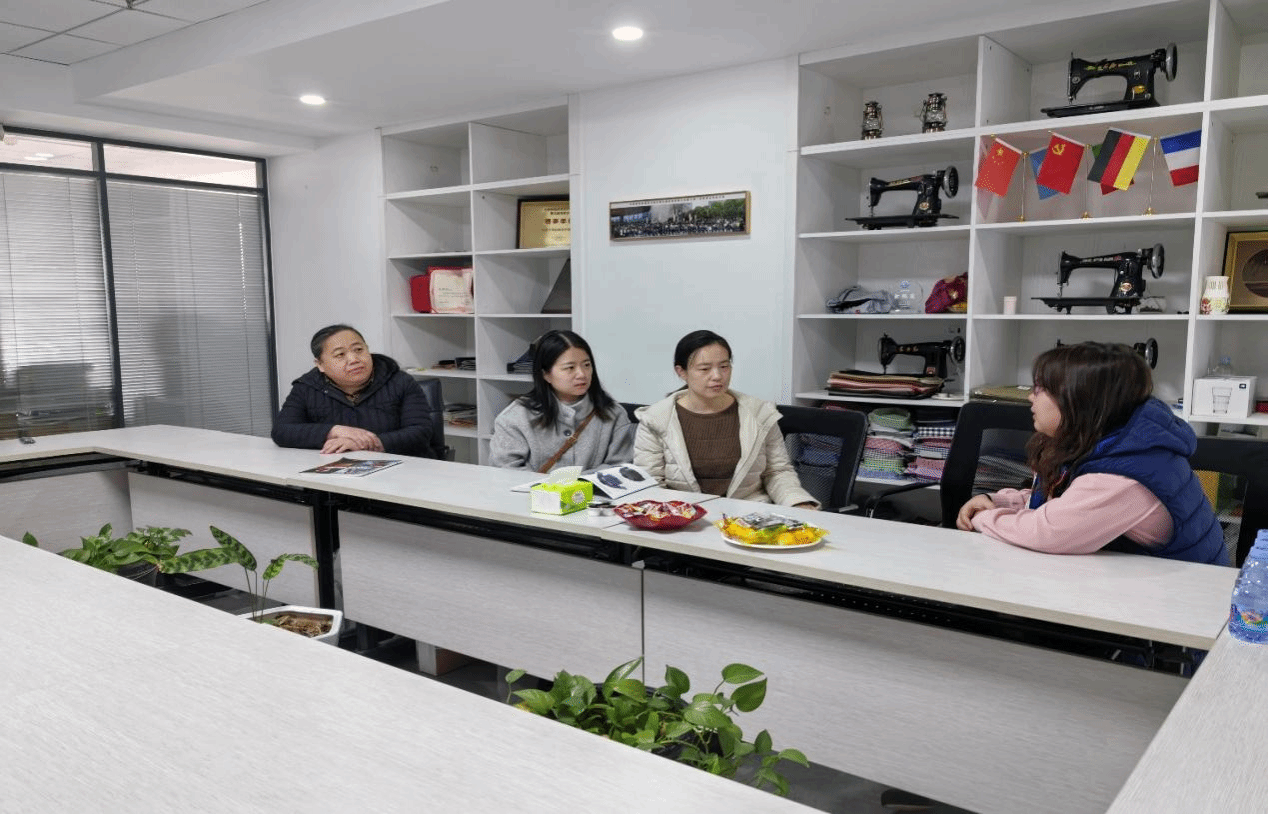 访企过程中,老师们参观了公司的设计工作室、生产车间以及销售展示区。在与实习学生交流时,老师们详细询问了学生的工作内容、日常任务以及实习收获。学生分享了自己在参与跟单项目工作中的体会,也提及了遇到的困难和挑战。随后,老师们与公司管理层就学生实习表现和人才培养等话题展开深入探讨。公司对实习学生的专业素养和工作态度给予高度评价,同时也结合行业发展趋势,提出了对国际经济与贸易专业的人才的岗位要求。公司代表为学生们介绍了外贸行业未来的发展方向、潜在机遇以及就业市场前景。最后,石家庄德铭服装有限公司表达了与太阳成集团建立长期校企合作关系的意向,希望在人才培养、实习就业、产学研合作等方面展开深度合作,实现互利共赢。