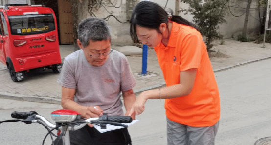 团队成员戴云杰向附近居民发放调查问卷(张坤 摄)