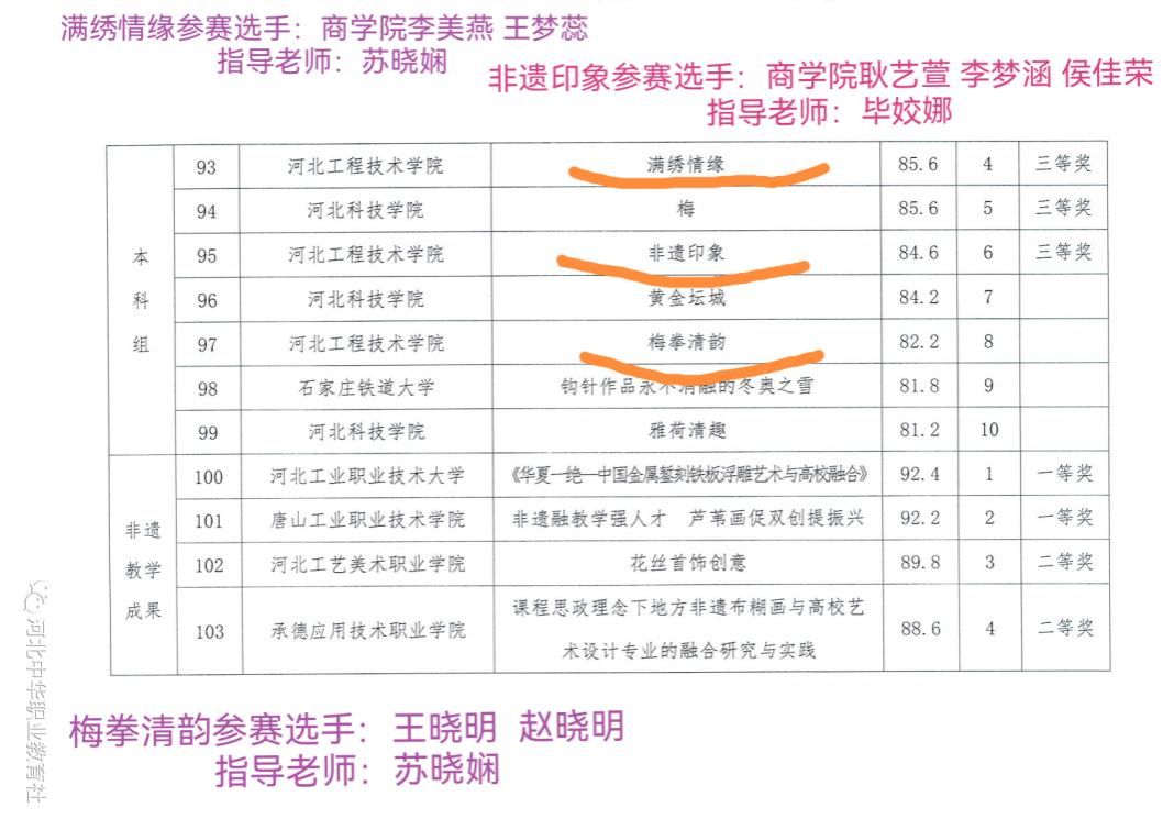 第二届河北省中华职业教育非遗创新大赛,全省 39 所院校、654 名师生报名,124件作品参赛2022年11月28 日至29 日在邯单市举办了线上决赛,采取参赛团队线上路演答辩、评审专家线上评审的形式进行。
