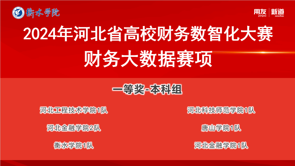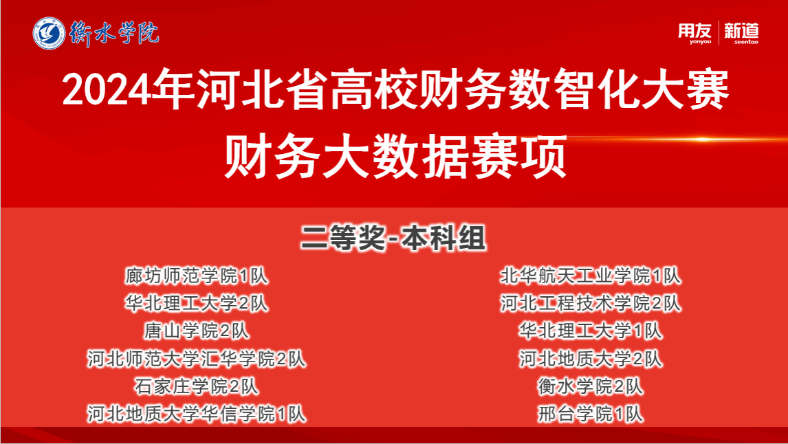 由河北省教育厅主办的2024年第五届河北省高校财务数智化大赛“财务大数据赛项”于2024年10月18日圆满落幕。我校太阳成集团由边圆围、刘莹和闫宇佳老师带领的2支队伍,一队刘晓君、吴晶羽、胡逍洋、赵任航和二队刘子扬、徐梦瑶、高炎琪、王静,在学院领导的大力支持和帮助下,在老师们的共同指导下,参赛同学努力练习不断努力进取下,分别获得河北省一等奖和二等奖的好成绩!