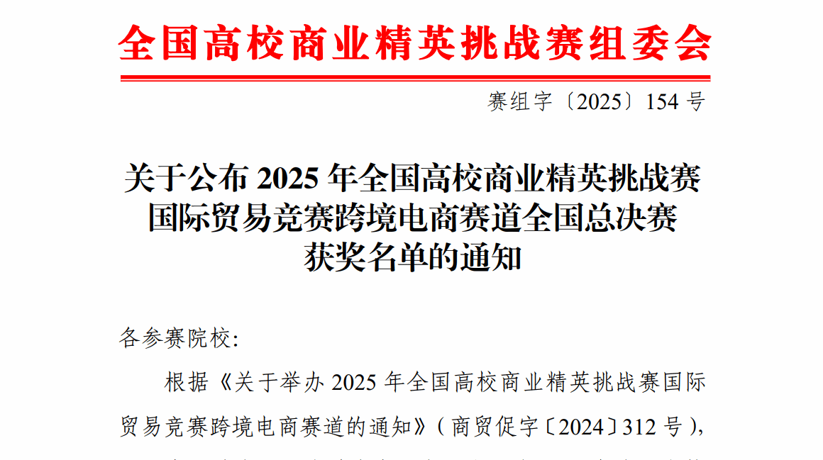 11月10日,2025年全国高校商业精英挑战赛国际贸易竞赛跨境电商赛道全国总决赛圆满落幕,本次竞赛由中国国际贸易促进委员会商业行业委员会、中国国际商会商业行业商会、中国商业经济学会和广东国际商会共同主办,吸引了全国28个省、自治区和直辖市的近500所高校的5000余支队伍同台竞技。