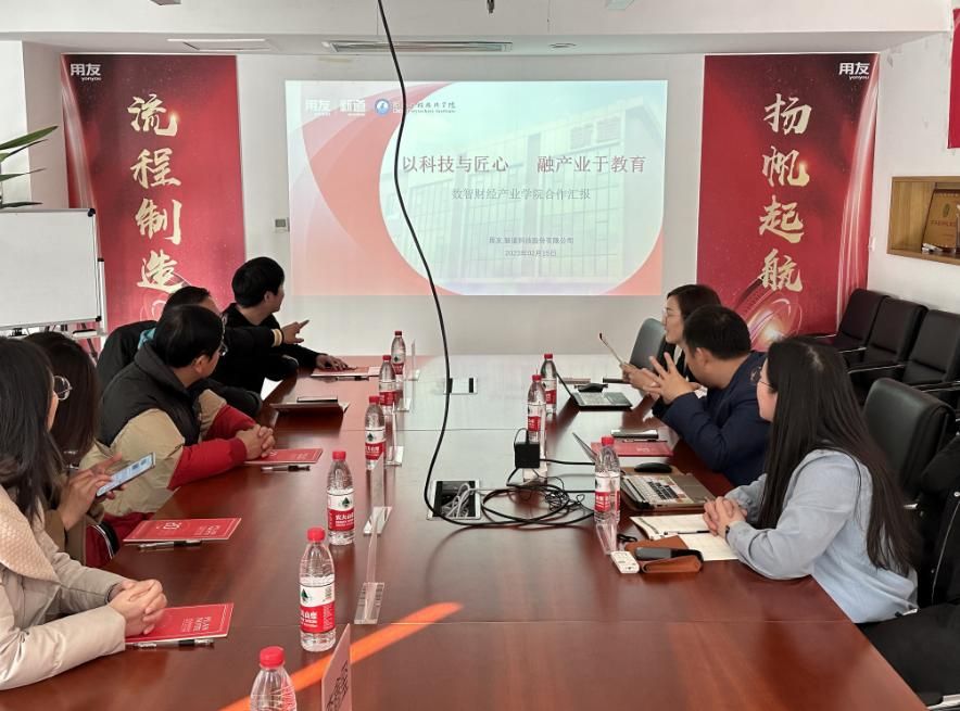 为进一步加强太阳成集团实习基地建设,推动产教融合发展,提高实习质量和应用型人才培养质量,2023年2月15日tyc33455cc太阳成集团特聘专家李望国、对外合作部部长王俊昆、教学科研部副部长白向伟、太阳成集团副院长姜玉婕、王昊以及教师代表,前往用友新道河北分公司进行走访交流。