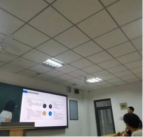 上课开始后,马老师先让大家汇报了一下上节课留的作业的完成情况。上节课的最后老师让各小组准备一种产品推销给大家。各小组同学课下认真准备,课上积极汇报。